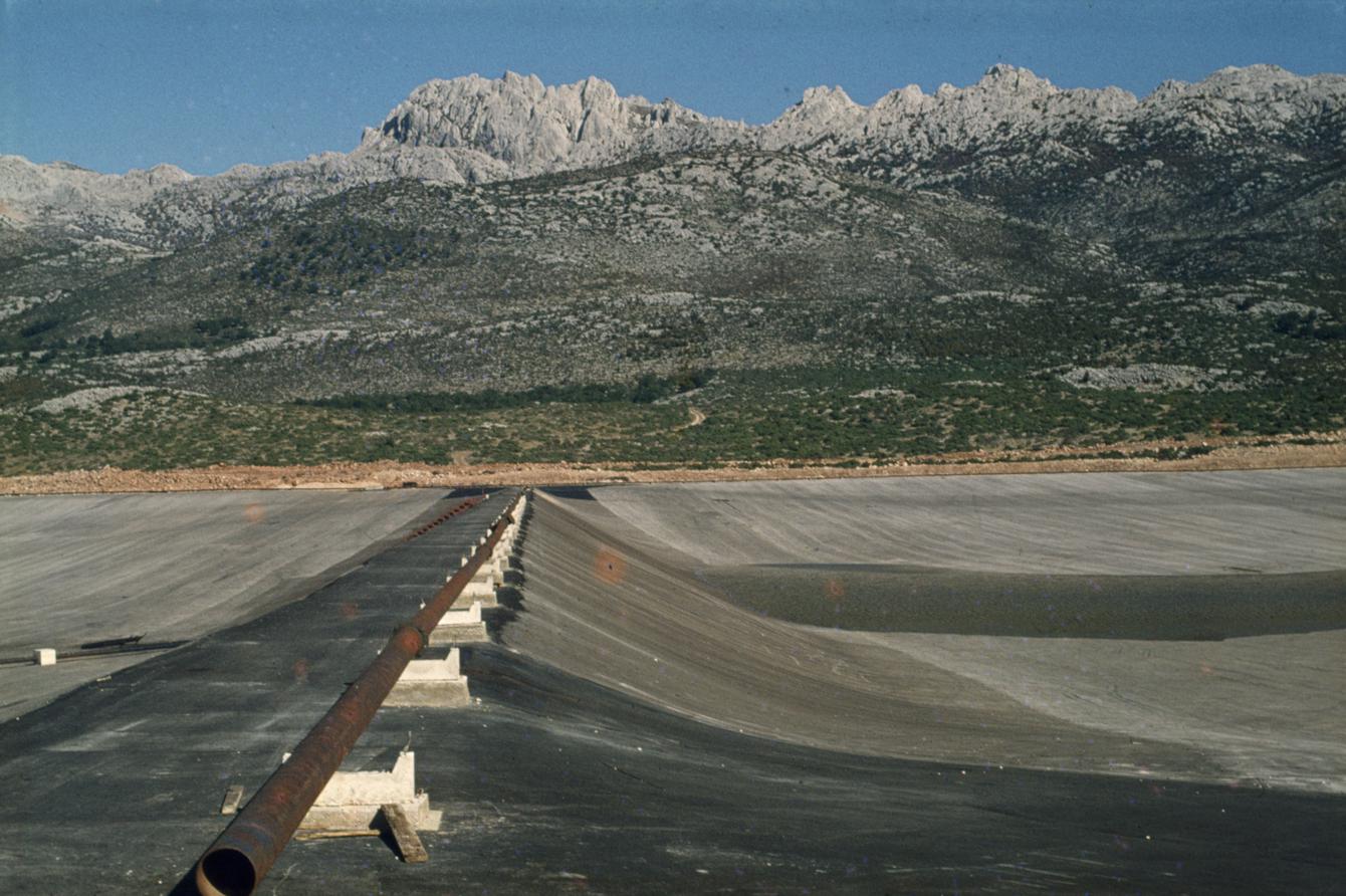 Pregradni zid istočne i zapadne velike taložnice; odvodna cijev istočnim rubom, prema Velebitu